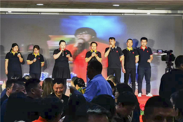 做销售最重要的就是要有自信,“自信人生二百年,会当击水三千里”!事业一部最靓的仔王明结献上的《相信自己》让全场掌声、欢呼声不断!